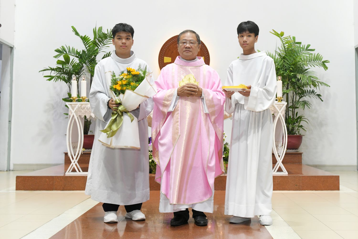 Đáp lời, Lm chánh xứ một lần nữa cảm ơn mọi thành phần dân Chúa, đồng thời xin cộng đoàn tiếp tục cầu nguyện cho ngài trong chặng đường sắp tới. Thánh lễ kết thúc lúc 6g00 cùng ngày với phép lành trọng thể và trong niềm vui lan tỏa qua những tấm hình kỷ niệm được chụp chung với quý cha đồng tế trước cung thánh.