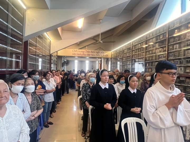 TGPSG -- Với tâm tình biết ơn, báo hiếu những người quá cố, và cùng dâng những lời kinh nguyện để họ sớm hưởng tôn nhan Chúa trên Thiên Đàng, Thánh lễ cầu cho các tín hữu đã qua đời của giáo xứ Hòa Hưng được cử hành vào lúc 16g, thứ Bảy, ngày 27/4/2024 tại nhà Chờ Phục Sinh của giáo xứ. Chủ tế thánh lễ là Lm G.Baotixita Bùi Ngọc Điệp (Dòng Thừa sai Việt nam). Hiệp thông thánh lễ có các Soeurs, thân nhân người đã khuất và đông đảo giáo dân đến tham dự, ca đoàn Cộng Đồng hát lễ.