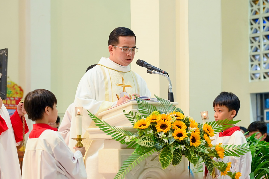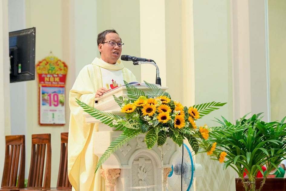 Sau phần Phụng vụ Lời Chúa, tiếp đến bài Tin Mừng do linh mục phó xứ Đaminh công bố, linh mục chánh xứ đã chia sẻ: