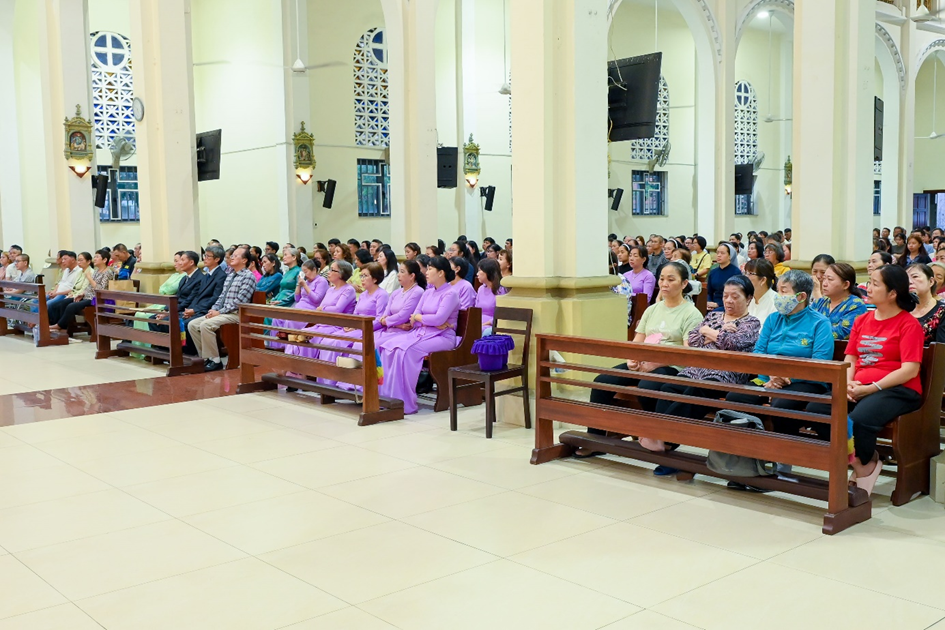 Mở đầu Thánh lễ, linh mục chánh xứ chúc mừng các ông, các anh nhận Thánh Giuse làm bổn mạng, đồng thời mời gọi cộng đoàn cầu nguyện xin Thánh Giuse chuyển cầu, giúp mỗi người biết chu toàn bổn phận trong gia đình, chăm lo cho những người thân yêu.