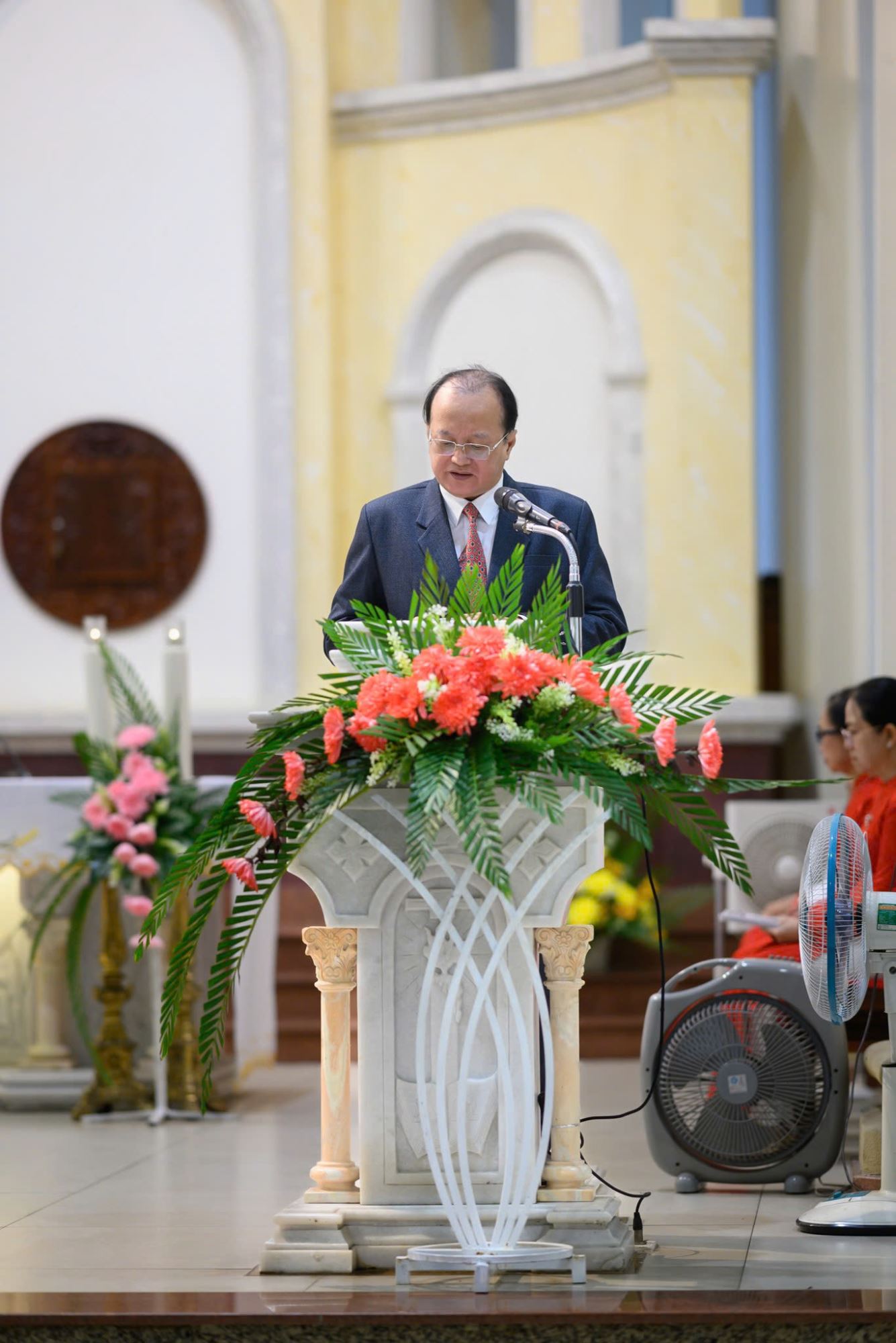 Sau lời nguyện hiệp lễ, đại diện HĐMV giáo xứ bày tỏ lòng tri ân linh mục chánh xứ Giuse vì sự đồng hành và chăm lo đời sống đức tin, đặc biệt trong công trình Nhà Chờ Phục Sinh. HĐMV cũng gửi lời cảm ơn linh mục phó Đaminh đã tận tâm hỗ trợ trong việc di dời hài cốt.