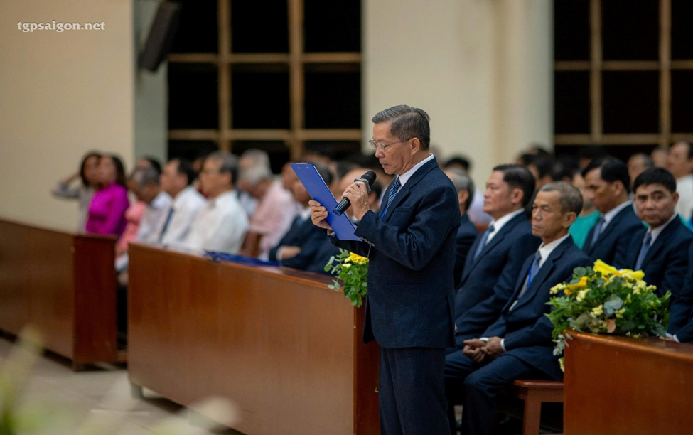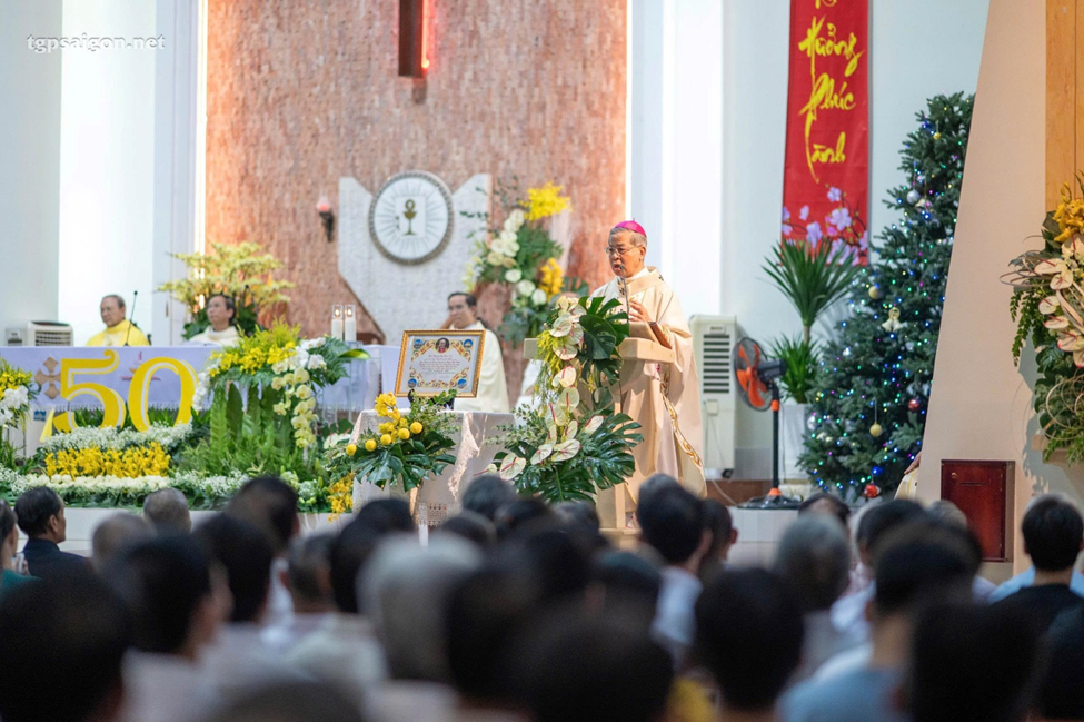 Sau lời nguyện hiệp lễ, vị đại diện Hội đồng Mục vụ giáo xứ đã bày tỏ tâm tình tri ân Đức Tổng Giám mục, các linh mục và toàn thể cộng đoàn đã sốt sắng hiệp dâng Thánh lễ cầu nguyện cho giáo xứ nhân ngày khai mạc Năm Thánh và mừng Kim Khánh 50 năm thành lập.