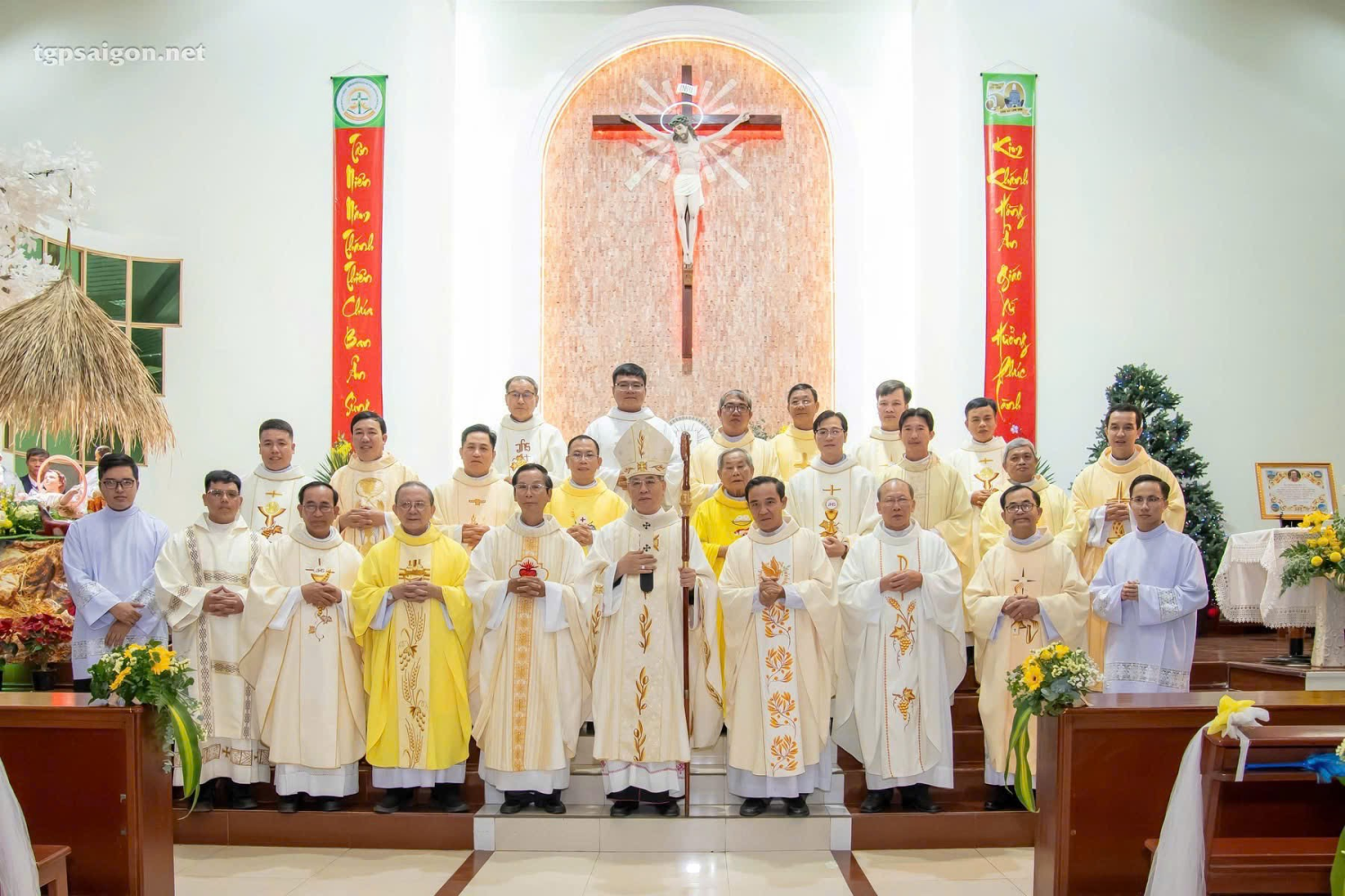 Đồng tế với ngài có linh mục Vinh Sơn Nguyễn Minh Huấn - Quản hạt Xóm Mới, linh mục Giuse Vũ Hữu Hiền - Trưởng Ban Truyền thông, linh mục chánh xứ Gioan Baotixita Phạm Văn Lâm, linh mục phó xứ Giuse Chu Hoàng Sơn, các linh mục quê nhà Cầu Chanh và các linh mục khách mời.