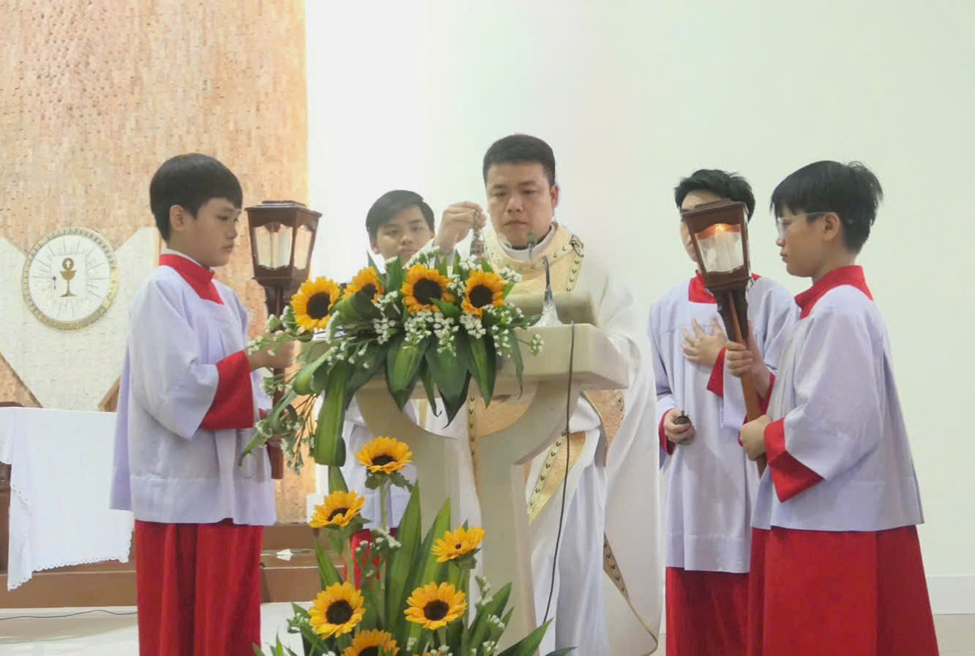 Đồng tế với ngài là linh mục phó xứ Giuse, cùng sự tham dự của các tu sĩ và giáo dân trong giáo xứ.