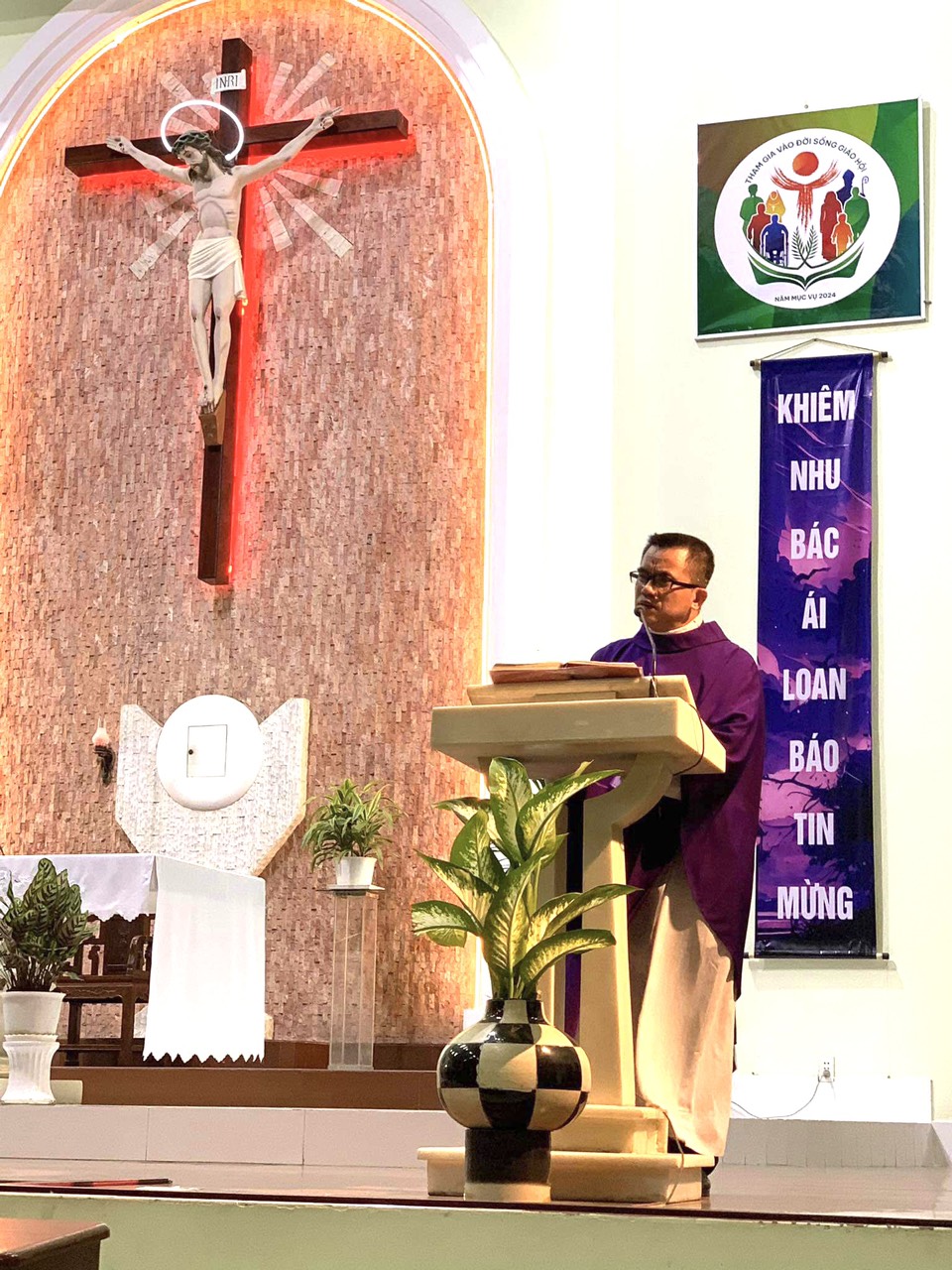 TGPSG -- “ Mùa chay là mùa hoán cải, mùa để chúng ta nhìn thấy và nghe thấy nỗi thống khổ của anh chị em và cũng là thời gian chúng ta dừng lại để cầu nguyện và đón nhận lời Chúa ” Đó là nội dung chính, do Linh mục (Lm) Đaminh Maria Đoàn Phúc Nhạc, đã chia sẻ với cộng đoàn trong 2 ngày tĩnh tâm, được cử hành sau các thánh lễ 18g thứ Năm và thứ Sáu (14,15-3-2024), tại nhà thờ Lam Sơn.