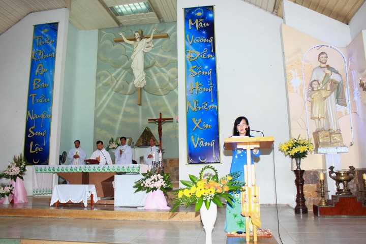Để kết thúc, cha nhắc nhở: Tạ ơn hồng ân 50 năm với biết bao ơn lành đã lãnh nhận, ta không chỉ cao rao tình yêu Thiên Chúa, nhưng cần học hỏi những đức hạnh trổi vượt mà Mẹ đã thực hành với tất cả lòng khiêm nhường và mến yêu, để mỗi ngày ta nên lành thánh, biết quan tâm chăm sóc gia đình hạnh phúc, sống bác ái yêu thương tha nhân, tích cực mang Tin Mừng bình an đến cho muôn dân, nhất là những người bất hạnh chung quanh ta. Có như vậy, chúng ta mới đạt được mục đích tối hậu đời mình, là được lên trời hưởng nhan thánh Thiên Chúa và Mẹ Maria.