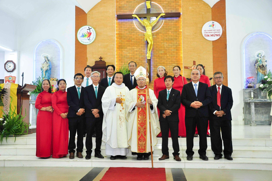 Đồng tế với ngài có linh mục chánh xứ Giuse Ngô Vũ Anh Tuấn, cùng 12 linh mục thuộc các Dòng Thánh Tâm Huế, Đức Mẹ Đấng Cứu Chuộc, Hiến Sĩ Đức Mẹ Vô Nhiễm, Tu đoàn Tông đồ Giáo sĩ Nhà Chúa; cùng sự hiện diện của đông đảo tu sĩ nam nữ, các thành viên Hội đồng Mục vụ, các em thiếu nhi Rước Lễ lần đầu, phụ huynh, huynh trưởng, dự trưởng và cộng đoàn dân Chúa trong giáo xứ.