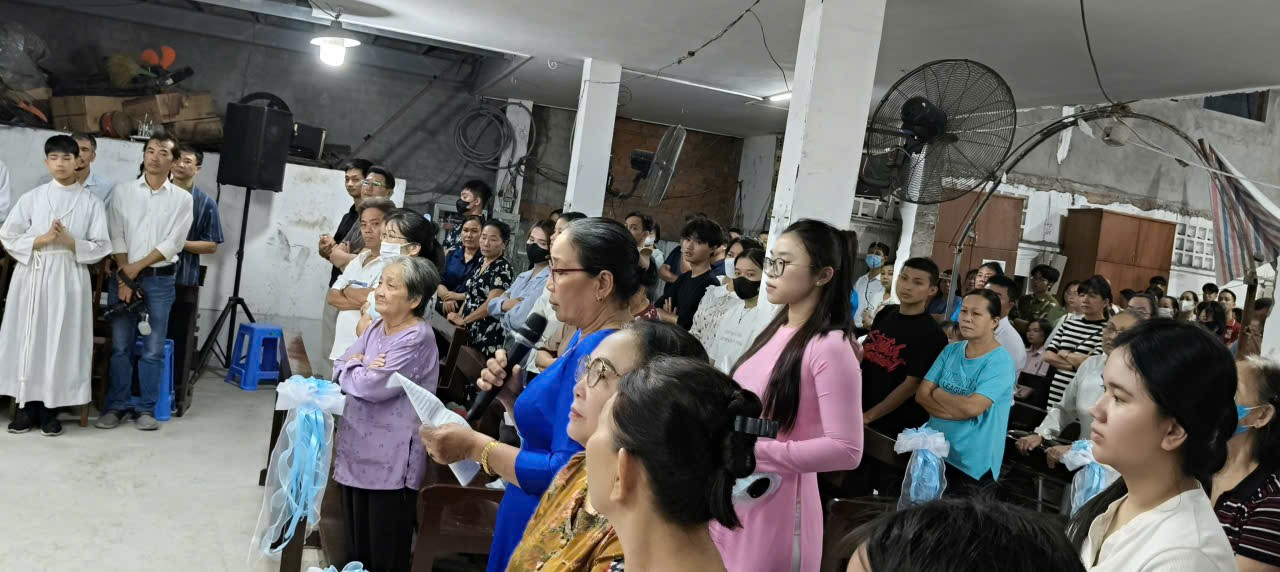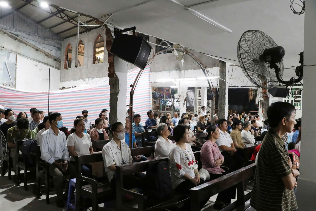 Dù ngôi thánh đường đang trong giai đoạn đại tu, nâng nền và nâng mái, cộng đoàn phải tham dự Phụng vụ tại khoảng sân phía sau. Tuy nhiên, sự hạn chế về không gian không làm giảm bớt lòng sốt sắng của mọi người. Những gương mặt hiệp thông, tiếng hát vang mạnh mẽ và những giây phút thinh lặng sâu lắng đã làm sáng lên tinh thần hiệp nhất của toàn giáo xứ.
