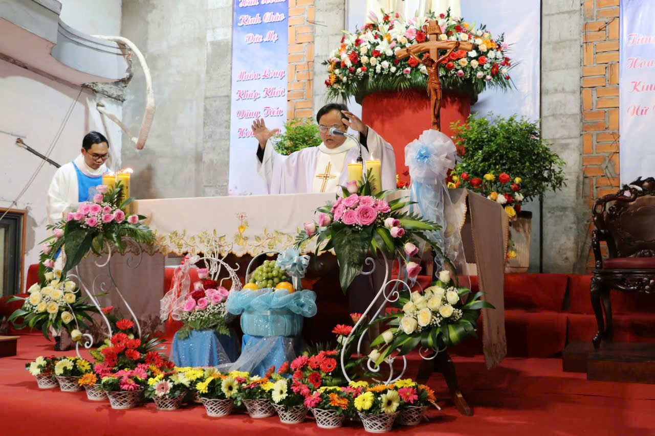 Đó là lời nhắn nhủ của linh mục Đa Minh Nguyễn Khải Tú, chánh xứ Môi Khôi, khi ngài chủ tế Thánh lễ Đức Mẹ Mân Côi lúc 18g00 ngày 07.10.2025 tại Đài Đức Mẹ Giáo xứ, mừng bổn mạng giáo xứ. Đồng tế với ngài có linh mục Gioan Nguyễn Minh Hiếu, cùng đông đảo giáo dân tham dự.