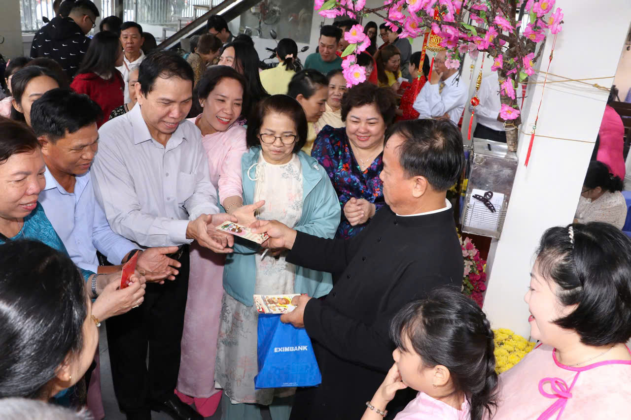 Niềm vui tiếp tục lan tỏa nơi sân nhà thờ: các em Thiếu nhi Thánh Thể dâng những điệu múa mừng Xuân rộn ràng; tiếp đến là tiếng trống lân dồn dập và màn múa lân sinh động làm bừng sáng bầu khí ngày mới. Cha sở ân cần lì xì cho mọi người, trao những phong bao nhỏ bé nhưng thấm đượm tình mục tử và lời chúc phúc.