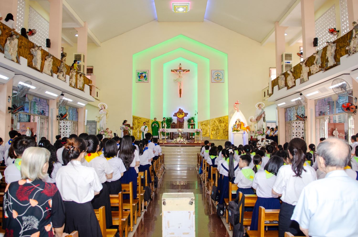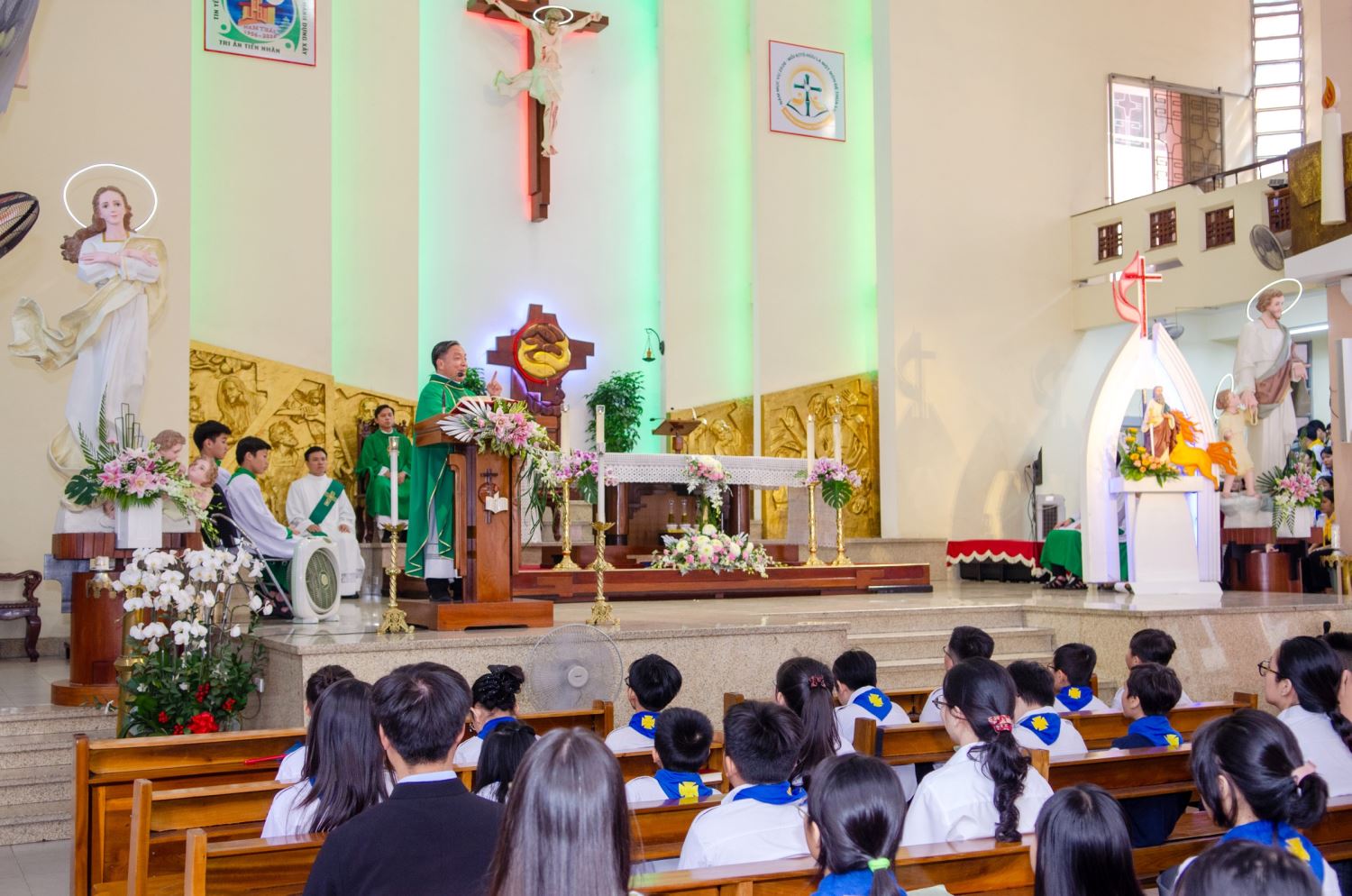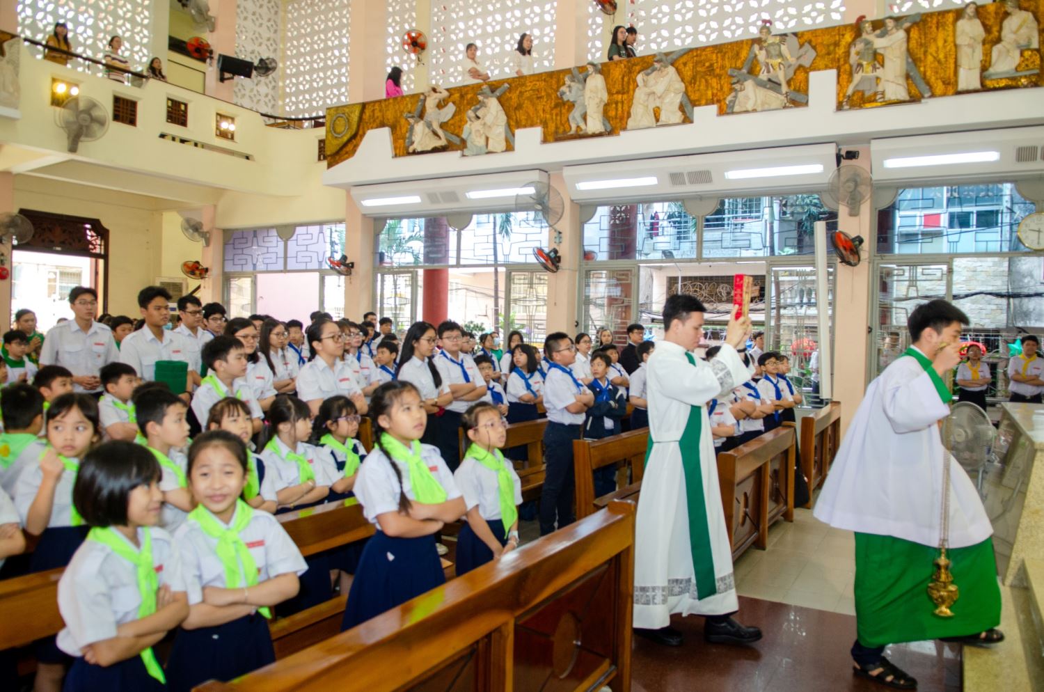 Tham dự Thánh lễ, ngoài các tu sĩ nam nữ, các anh chị giáo lý viên, còn có đông đảo các em thiếu nhi trong giáo xứ.