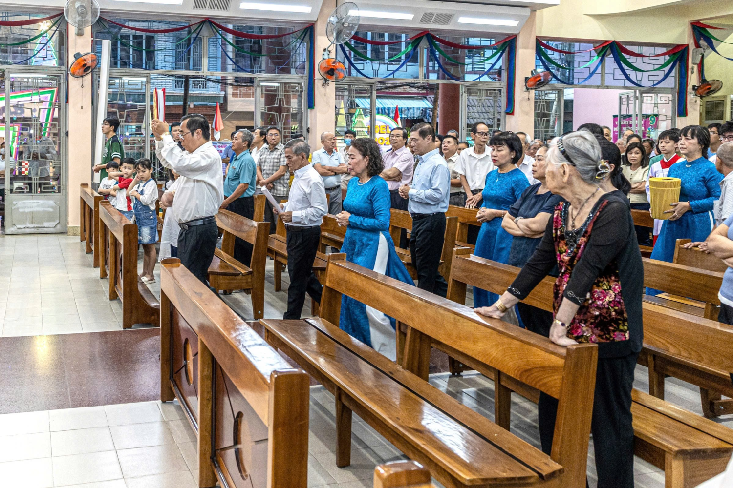 Đồng tế với ngài có linh mục phó xứ Vinh Sơn Nguyễn Vũ Hiệp Hoàng, cùng sự tham dự đông đảo của cộng đoàn giáo dân giáo xứ Nam Thái ngồi chật kín khuôn viên nhà thờ.