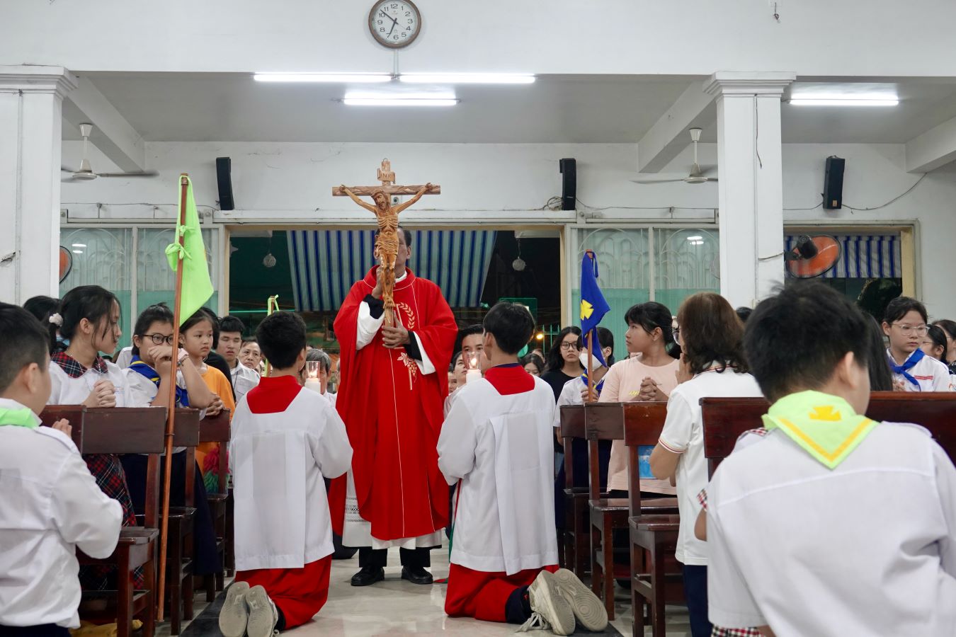 TGPSG -- Cùng với Giáo hội tưởng niệm cuộc Thương khó của Chúa Giêsu, chiều thứ Sáu Tuần Thánh, lúc18g00 ngày 18.04.2025, tại giáo xứ Nhân Hoà, hạt Tân Sơn Nhì đã cử hành nghi thức Suy tôn Thánh giá do linh mục (Lm) Phó xứ Gioakim Đỗ Bá Thái chủ sự, cùng phụ có Thầy Phó tế Phêrô Nguyễn Thái Sơn MSV.