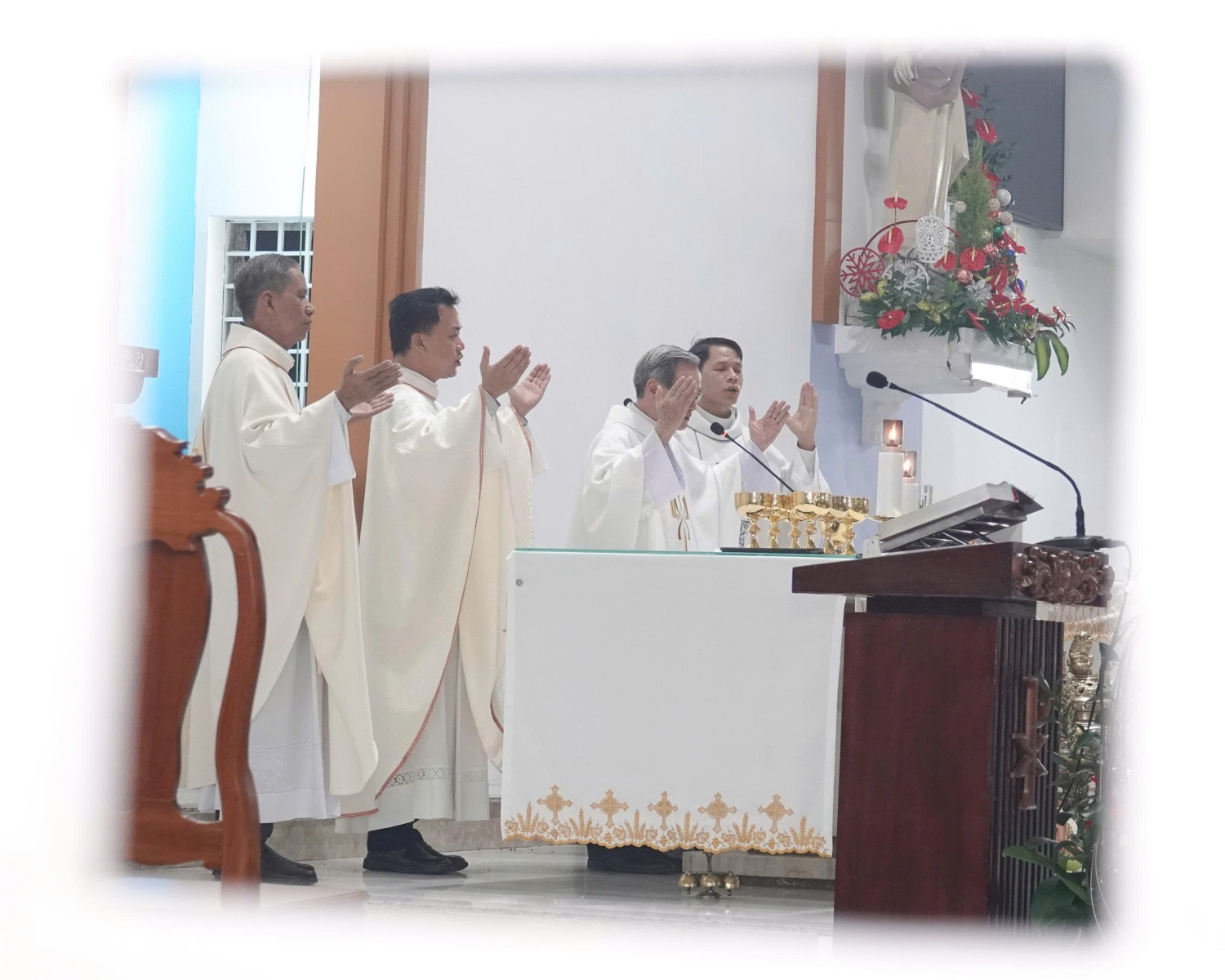 Sau bài công bố Tin Mừng theo thánh Gioan, linh mục chánh xứ Giuse đã dẫn đưa cộng đoàn đi vào chiều sâu của mầu nhiệm Nhập Thể qua lời Tin Mừng: “Ngôi Lời đã trở nên người phàm và cư ngụ giữa chúng ta” (Ga 1,14). Từ đó, ngài quảng diễn rằng Thiên Chúa vẫn không ngừng hiện diện và đồng hành với con người trong mọi hoàn cảnh của cuộc sống hôm nay, kể cả trong thế giới công nghệ số và những cô đơn âm thầm của con người thời đại.