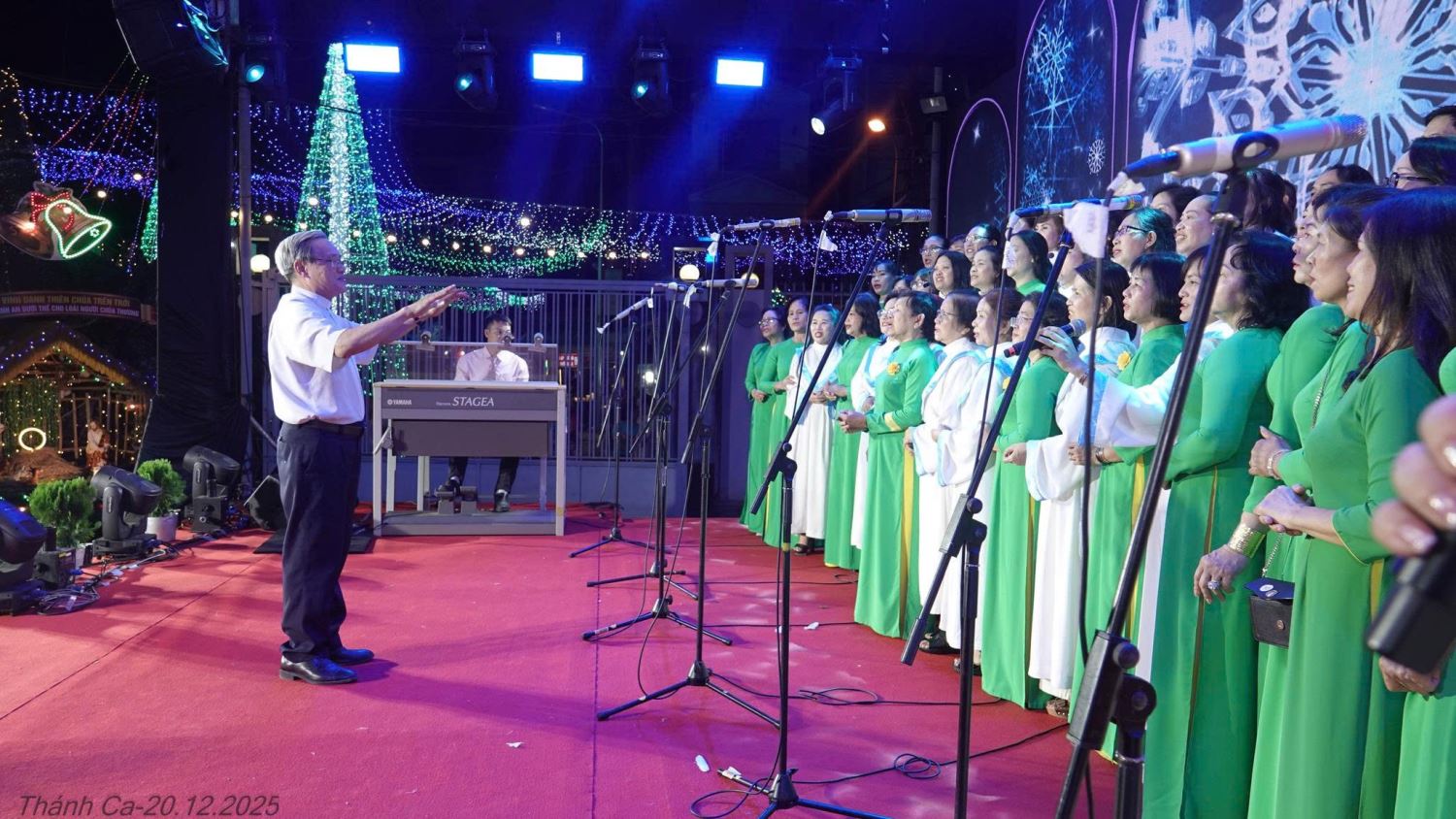 Điểm nhấn huy hoàng nhất của mùa lễ năm nay là đêm thánh nhạc, vào tối 20.12.2025 với chủ đề: “Này tôi báo cho anh em một tin mừng trọng đại, cũng là tin mừng cho toàn dân” (Lc 2,10), quy tụ tiếng hát của 7 Ca đoàn trong Giáo xứ cùng các nghệ sĩ Công giáo: Hiền Thục, Vy Oanh, Phương Anh, Phương Ý, Gia Ân, Phúc Tần, Lina Nguyễn. Những giai điệu du dương vang lên như tiếng thiên thần năm xưa, loan báo Tin Mừng cứu độ đến mọi tâm hồn.