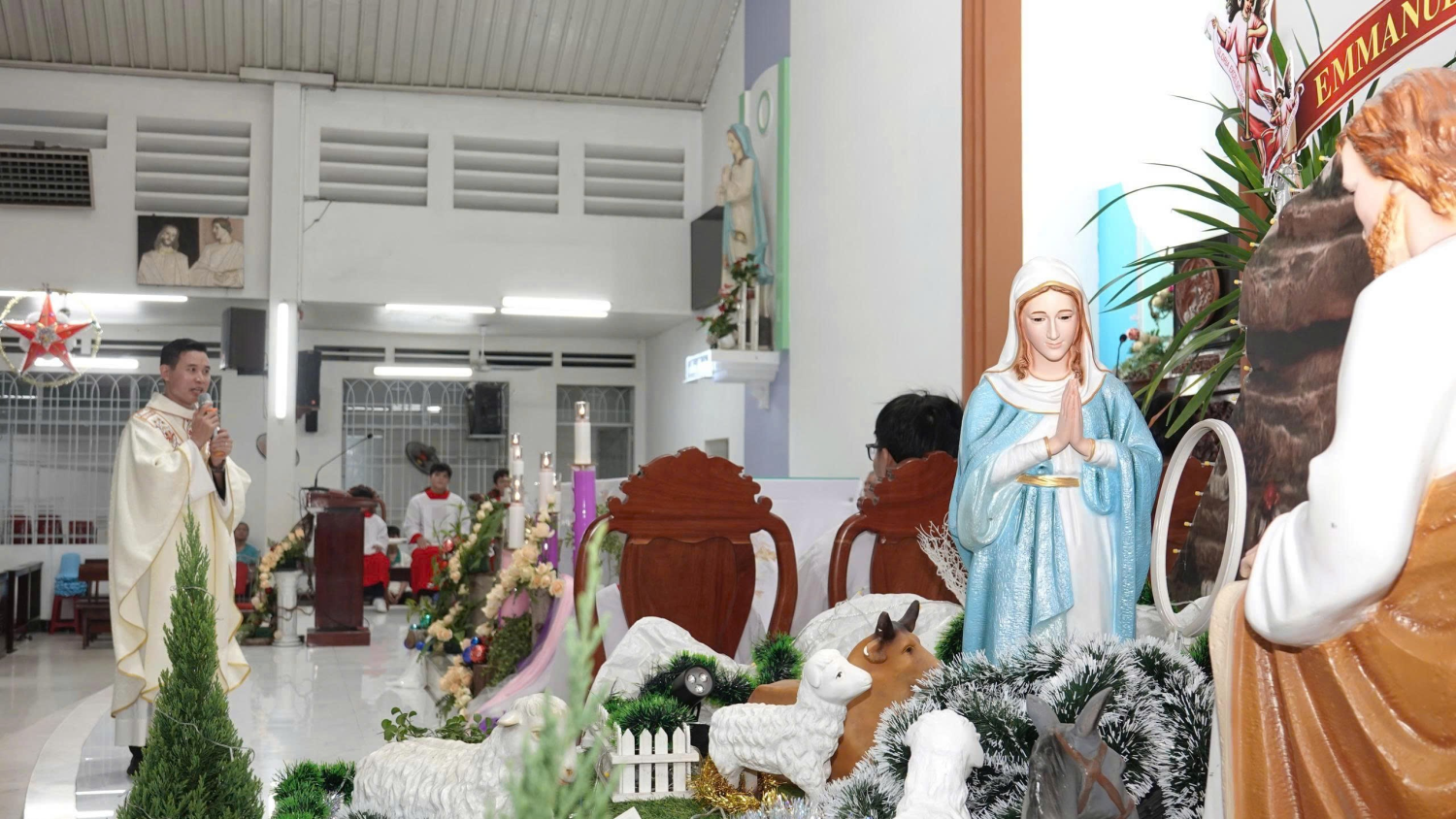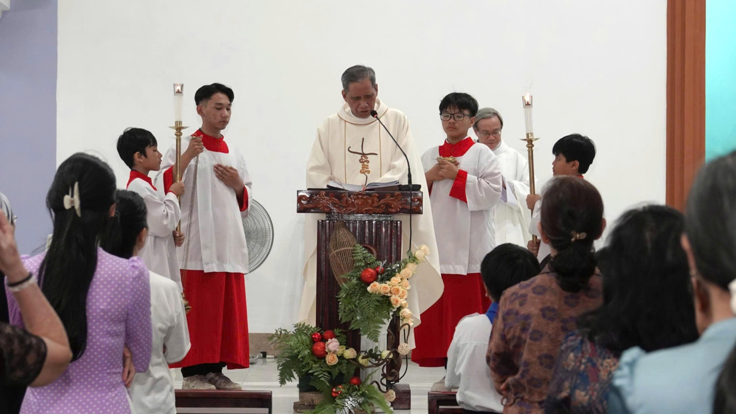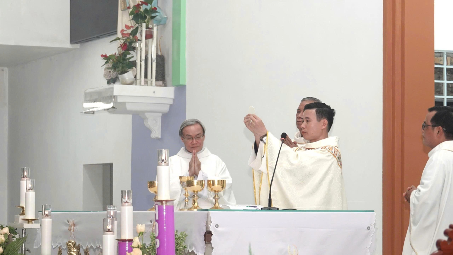 Trước đó, khi còn là thầy phó tế, tân linh mục đã từng phục vụ tại giáo xứ này. Hôm nay, ngài cùng cộng đoàn dâng Thánh lễ Tạ ơn long trọng sau khi được Đức Giám mục Anphongsô Nguyễn Hữu Long truyền chức linh mục tại nhà thờ Tân Phú vào sáng ngày 26-11-2025.
