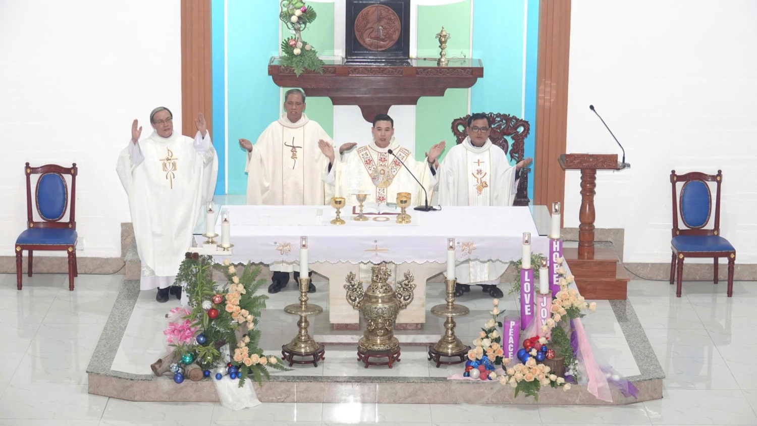 Thánh lễ do tân linh mục Phêrô chủ tế. Đồng tế với ngài có linh mục chánh xứ Giuse Hồ Thứ, cùng hai linh mục phó xứ Gioakim Đỗ Bá Thái và Giuse Nguyễn Thành Công, với sự hiện diện của quý tu sĩ nam nữ và đông đảo giáo dân trong giáo xứ.