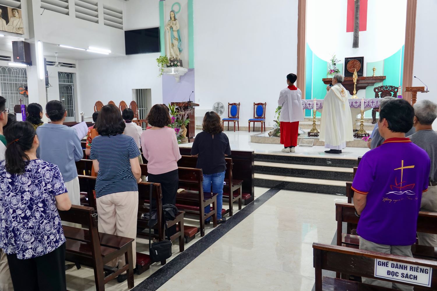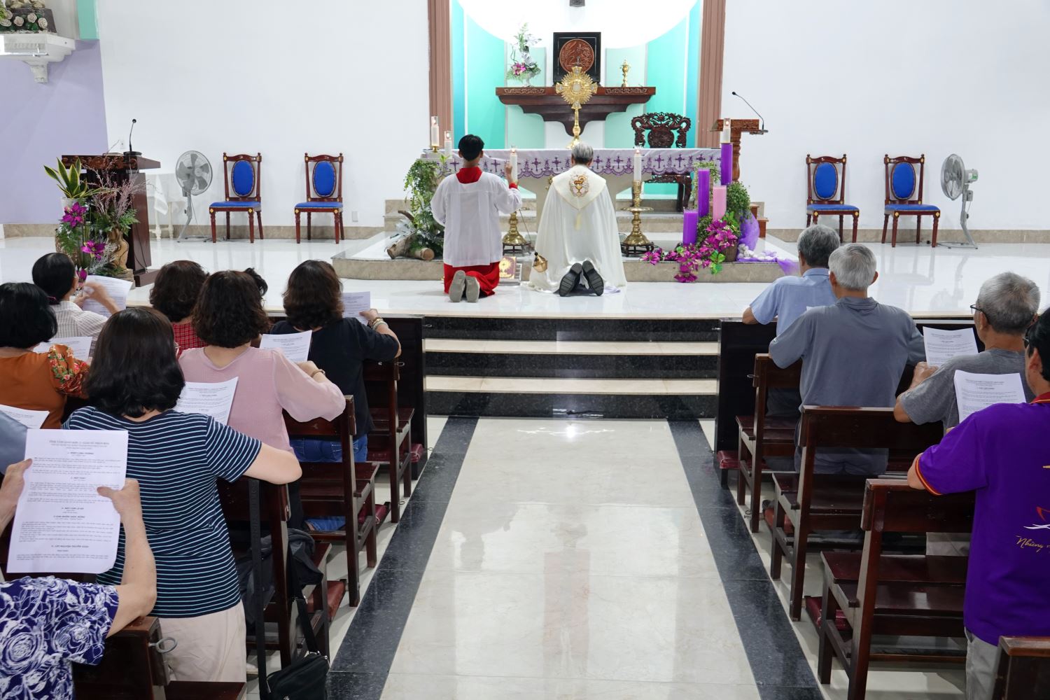 Sau giờ tĩnh tâm, cộng đoàn hiệp dâng tâm hồn trong Chầu Thánh Thể trang nghiêm, đặt trọn tâm tình dưới chân Chúa Giêsu Thánh Thể, nguồn sức mạnh và lửa yêu mến truyền giáo. Bầu khí linh thiêng này mở ra cơ hội cho mỗi người lắng nghe tiếng Chúa, cảm nhận tình yêu và sức sống dồi dào từ Thánh Thể.