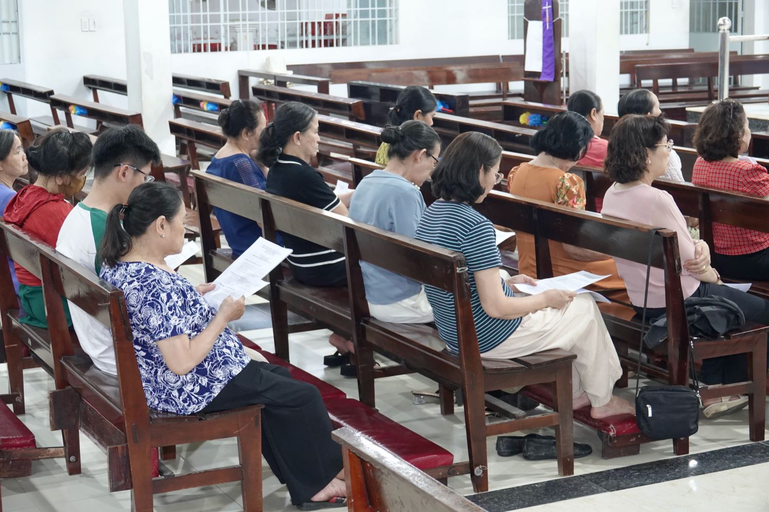 Mở đầu buổi tĩnh tâm, cha chánh xứ Giuse Hồ Thứ hướng dẫn với chủ đề: “Khát vọng loan báo Tin Mừng theo gương Thánh Bổn mạng”. Ngài mời gọi cộng đoàn tạm gác những bận rộn đời thường, lắng đọng tâm hồn, trở về với chính mình, với Chúa và với nhau, để Lời Chúa chạm đến nhịp đập của trái tim mỗi người. Đây là khoảng lặng thiêng liêng, nơi mọi người được mời gọi dừng lại, suy niệm và mở lòng đón nhận Chúa.