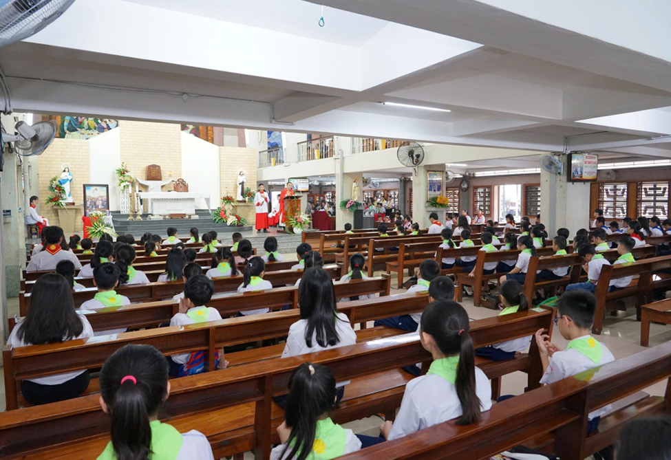 Tham dự Thánh lễ có sự hiện diện của các tu sĩ, các huynh trưởng - giáo lý viên, các em thiếu nhi và đông đảo các thành phần dân Chúa.
