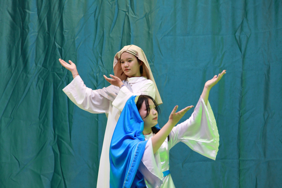 Đỉnh cao của đêm Canh thức là phần diễn nguyện về biến cố Thiên Chúa nhập thể. Cảnh truyền tin được thể hiện trên nền nhạc nhẹ nhàng, giàu cảm xúc: Đức Maria, người nữ tuyệt mỹ được Thiên Chúa tuyển chọn, khiêm tốn thưa “Xin vâng”, mở ra kỷ nguyên cứu độ. Tiếp đó là cảnh Đức Maria thăm viếng bà Elisabét, trên nền bài Magnificat, làm cộng đoàn rung động trước tâm tình ngợi khen của Đức Maria – người mang trong mình niềm vui của Đấng Cứu Thế.