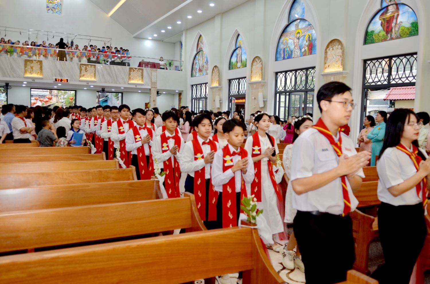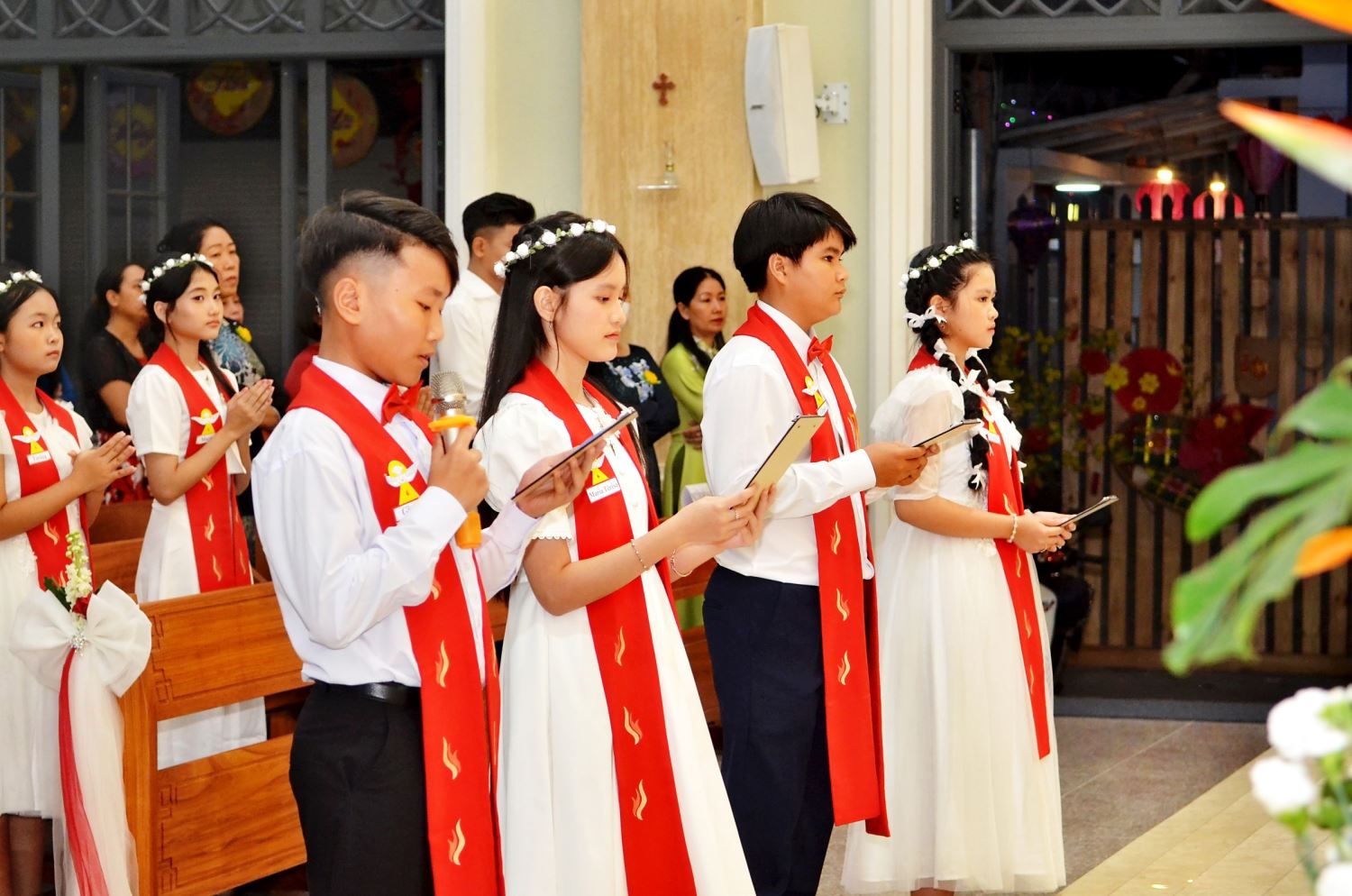 Tham dự Thánh lễ có các em thiếu nhi, phụ huynh, cha mẹ đỡ đầu và cộng đoàn giáo dân trong giáo xứ.