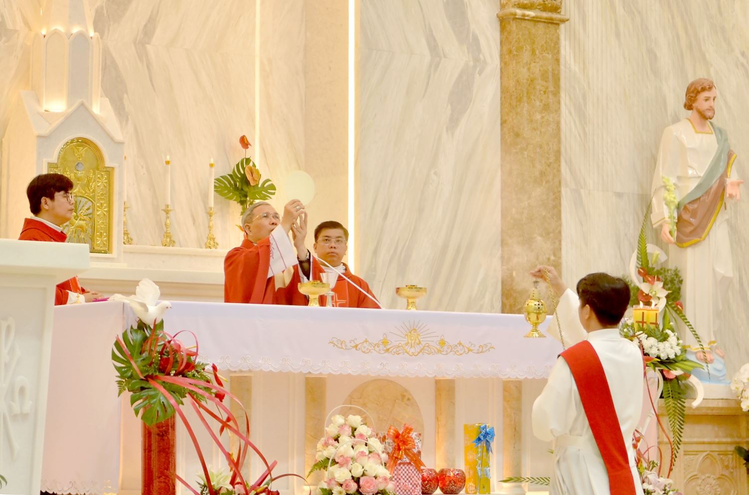 Đồng tế với ngài có linh mục Giuse Nguyễn Trọng Hiếu, linh mục Giuse Nguyễn Đức Thịnh cùng bốn linh mục khác. Phục vụ bàn thờ có thầy phó tế.