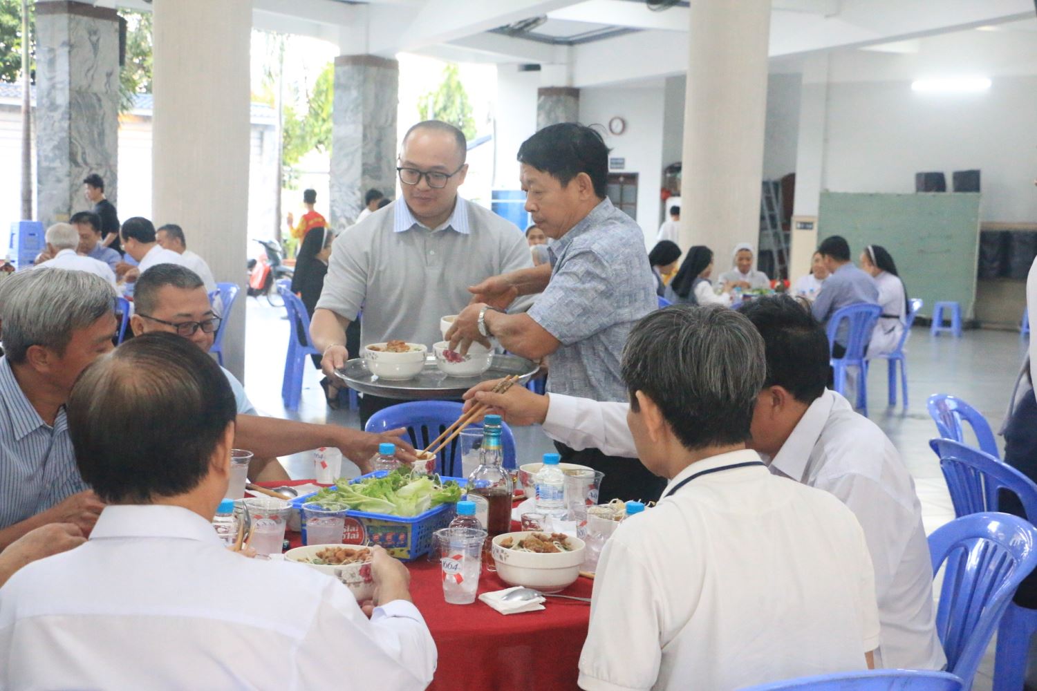 Sau Thánh lễ, Lm Chánh xứ Phêrô Phạm Quốc Hùng – SDB, thân mật đãi các ông bà cố - là cha mẹ hoặc người đại diện gia đình các tu sĩ - một bữa sáng giản dị mà đậm tình xuân. “Một ly, một tô” nhưng đầy ắp sự quan tâm.