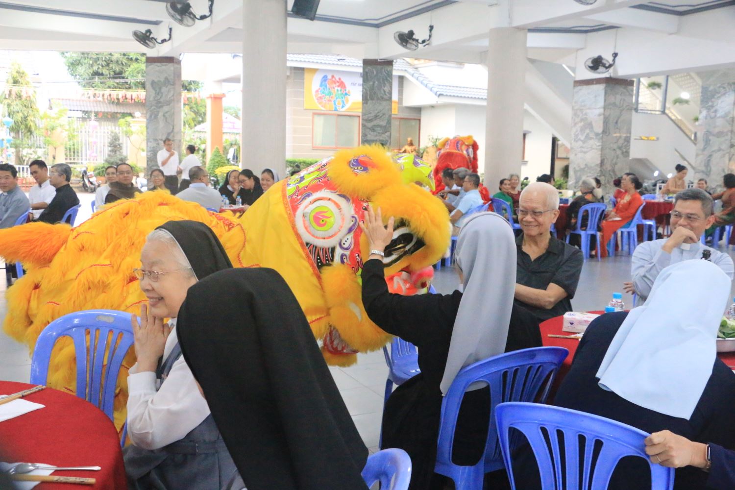 Giữa bầu khí ấy, hình ảnh một bà cố ngồi xe lăn, được người con nữ tu ân cần đẩy đi lễ rồi cùng dự tiệc sáng, khiến nhiều người lặng đi vì xúc động. Một đời hy sinh âm thầm. Có lẽ chỉ những ngày Tết sum họp như thế này, các ông bà cố mới được hưởng trọn niềm vui đoàn viên và niềm tự hào về ơn gọi của con mình.
