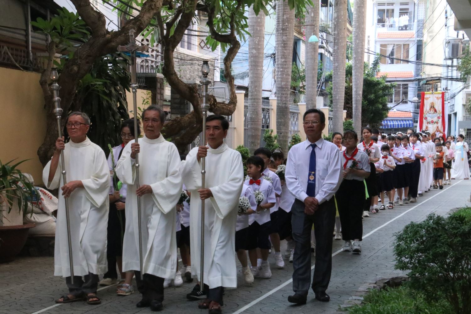 Tham dự Thánh lễ có: HĐMV, quý nữ tu, các anh chị Huynh Trưởng, các đoàn thể trong giáo xứ, các em thiếu nhi và nhóm dâng hoa cùng cộng đoàn dân Chúa.