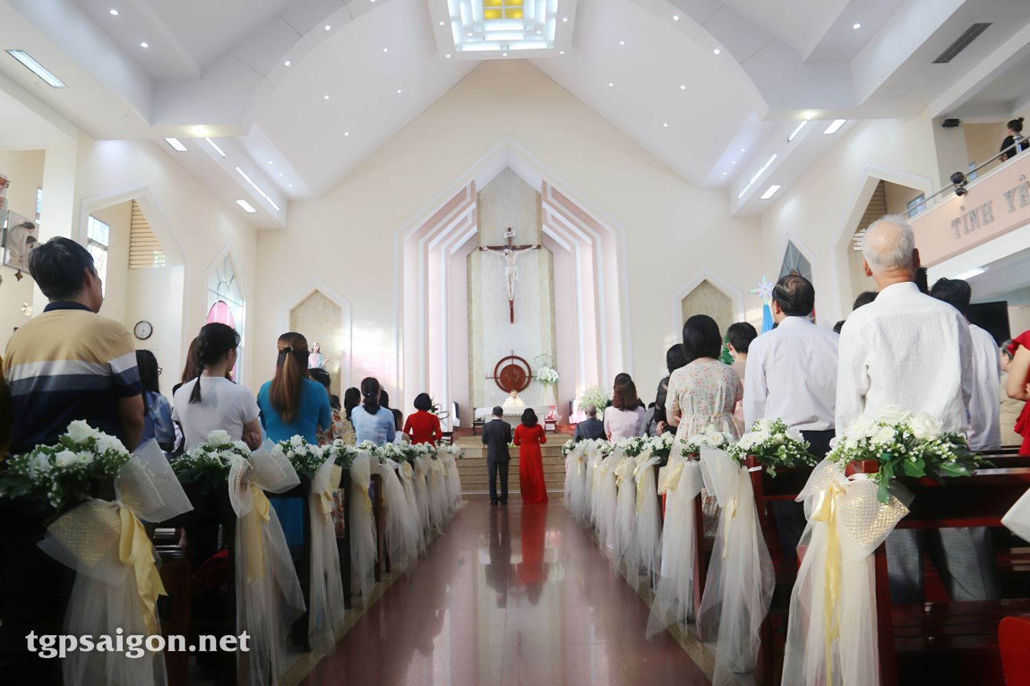 Tham dự Thánh lễ gồm có: 9 đôi hôn phối cùng người thân và gia đình, HĐMV, quý tu sĩ nữ và cộng đoàn dân Chúa trong và ngoài giáo xứ.