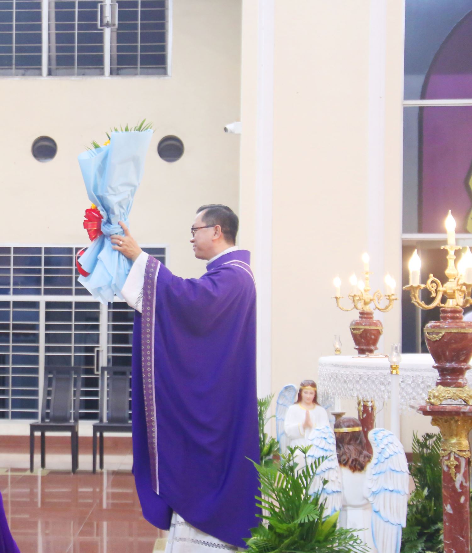 Để tỏ lòng tri ân, cộng đoàn đã trao tặng linh mục bó hoa tươi thắm.