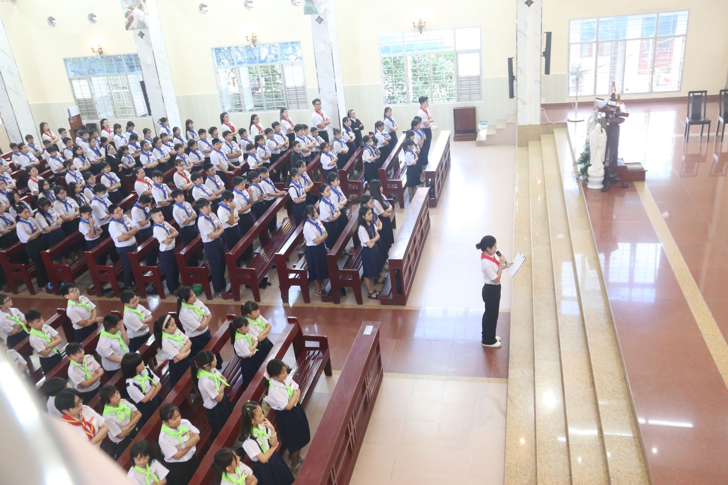 - Rước lễ: Khi tham dự Thánh lễ và rước lễ, Chúa ngự vào lòng các em, hướng dẫn và giúp các em sống trọn vẹn hơn. Rước lễ không chỉ là nghi thức, mà là cơ hội đón nhận ơn Chúa, để tâm hồn được bình an và mạnh mẽ.