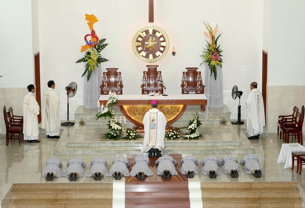 - Tuyển chọn và thẩm vấn: Sơ giáo giới thiệu danh sách 10 ứng sinh xin tuyên khấn. Sau đó, ĐTGM Giuse đã thẩm vấn để các ứng sinh nói lên niềm tin và ý nguyện phó thác đời mình trong tay Thiên Chúa. Tiếp theo, cộng đoàn phụng vụ hát Kinh Cầu Các Thánh để cầu nguyện cho các ứng sinh.