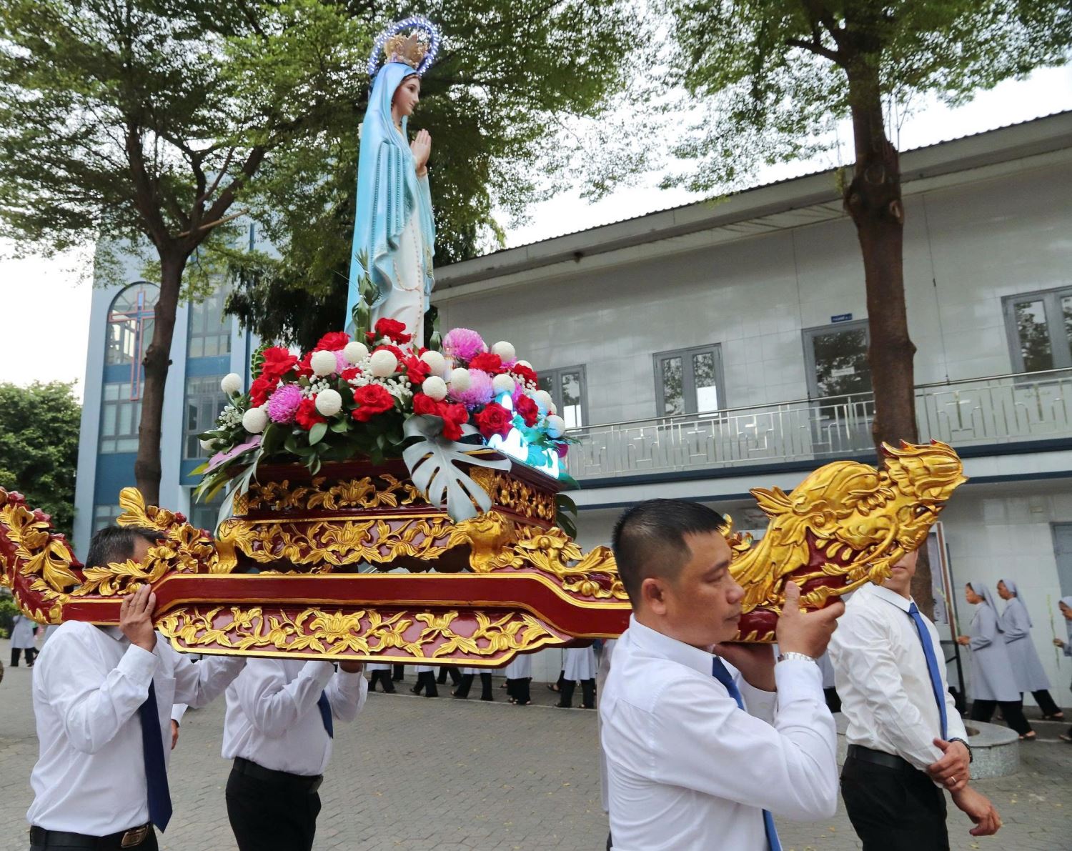 Trước Thánh lễ, cộng đoàn tham gia rước kiệu Đức Mẹ Mân Côi chung quanh thánh đường, hòa trong lời kinh Mân Côi dâng Mẹ với bầu khí trang nghiêm và sốt sắng, sau đó tiến vào cung thánh hiệp dâng Thánh lễ.