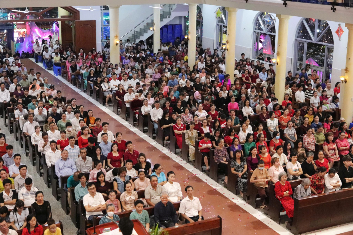 Lúc 21g, Thánh lễ vọng Giáng Sinh được cử hành. Đoàn đồng tế gồm linh mục chánh xứ Giuse, hai linh mục phó Giuse cùng các em lễ sinh long trọng rước tượng Chúa Hài Đồng lên cung thánh. Đông đảo cộng đoàn dân Chúa hiện diện, hiệp thông trong bầu khí linh thiêng của đêm mừng Con Thiên Chúa làm người.