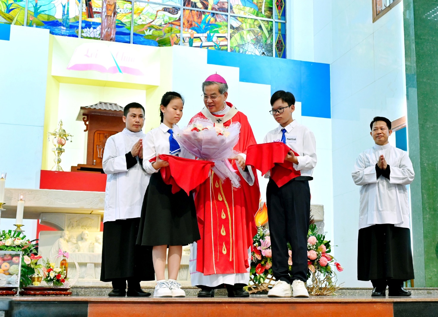 Đồng tế với Đức TGM Giuse có Linh mục (Lm) Vinh Sơn Vũ Đức Liêm, chánh xứ Tân Phú Hòa, các linh mục thân quen. Tham dự Thánh lễ có tu sĩ nam nữ, các em lãnh nhận Bí tích, cha mẹ đỡ đầu và cộng đoàn.