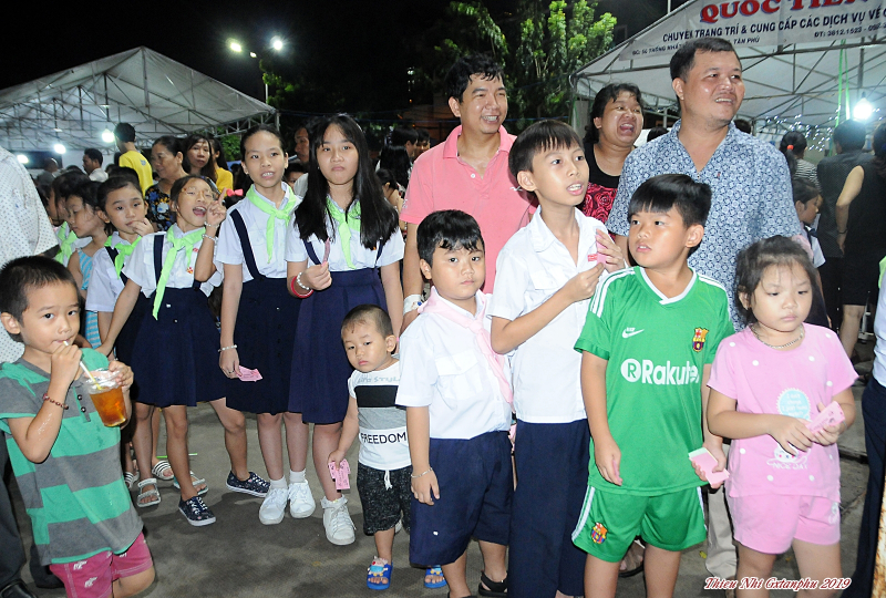Đoàn Thiếu Nhi Thánh Thể (TNTT) giáo xứ Tân Phú hạt Tân Sơn Nhì, Tổng Giáo Phận Sài Gòn đã tổ chức hội chợ mừng bổn mạng - 55 năm hồng ân của Đoàn, vào lúc 18g45 ngày 04.07.2019 tại sân nhà thờ Gx Tân Phú.