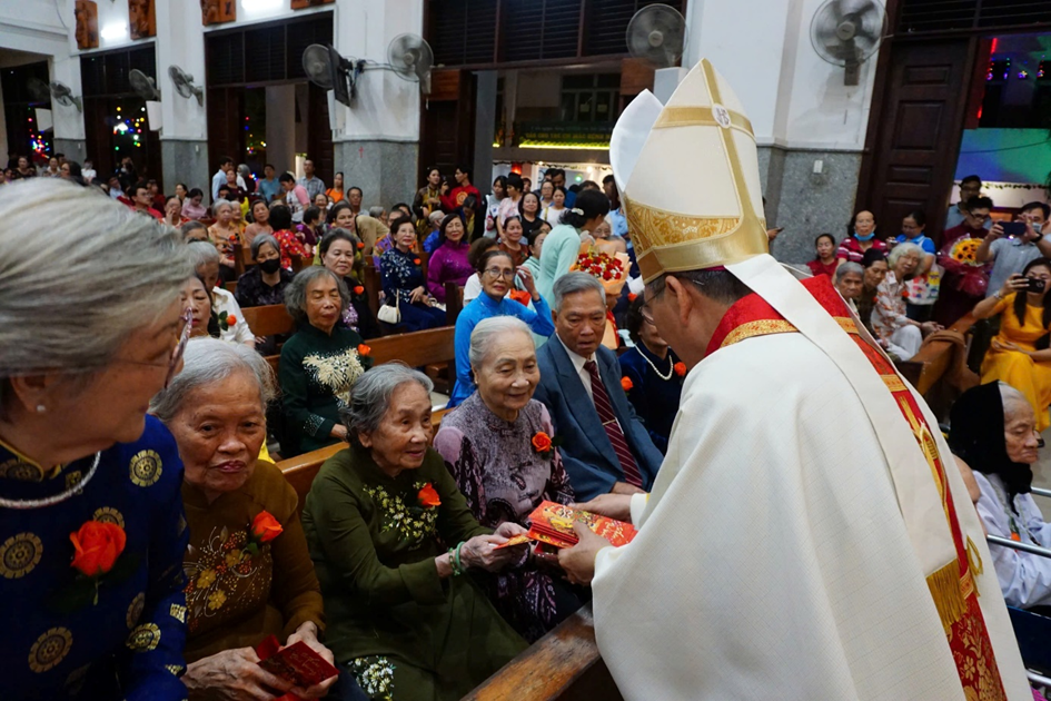 Sau lời nguyện hiệp lễ, đại diện giáo xứ dâng lời tri ân Đức Giám mục, linh mục chánh xứ và gửi lời chúc Xuân Bính Ngọ, chúc thọ các cụ trong giáo xứ. Đó là những tâm tình đơn sơ nhưng chân thành của con cháu dành cho ông bà: lời xin lỗi, lòng biết ơn và những lời cầu chúc tốt đẹp trong sự gìn giữ, quan phòng của Chúa. Tiếp đó, bó hoa tươi thắm được dâng lên Đức Giám mục như dấu chỉ lòng tri ân.
