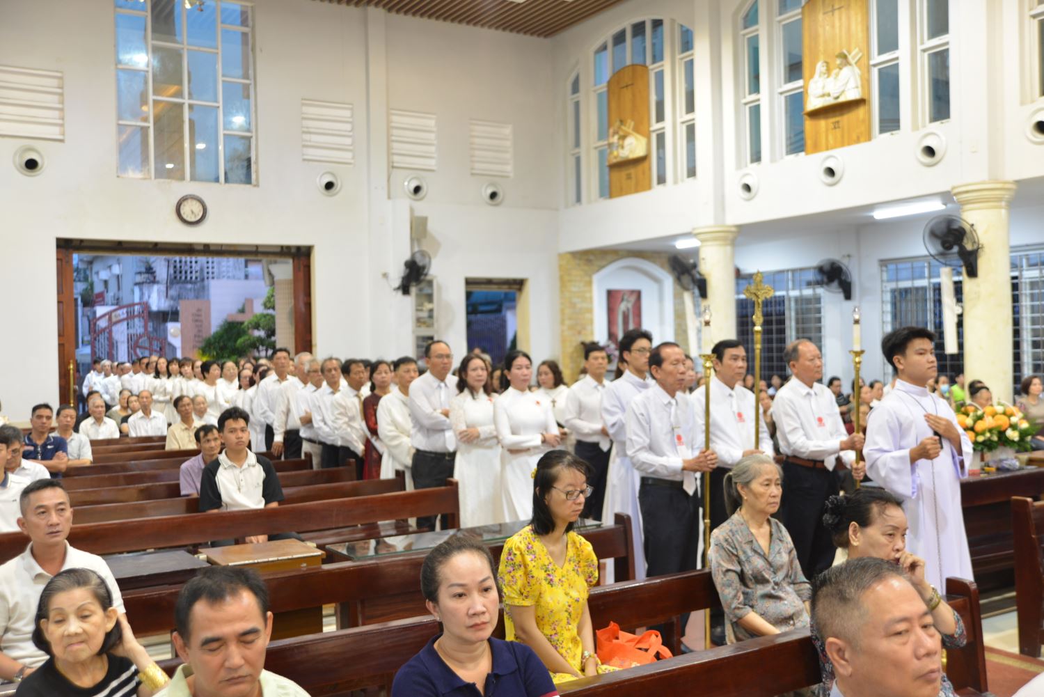 Thánh lễ được khởi sự bằng đoàn rước trang nghiêm từ cuối nhà thờ tiến lên cung thánh.