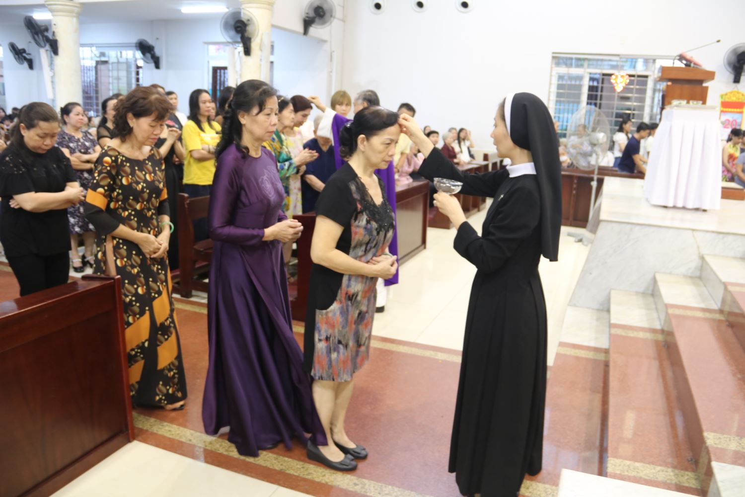Sau bài giảng, cộng đoàn lần lượt tiến lên lãnh nhận tro. Từ các em thiếu nhi đến những người lớn tuổi, mọi người đều cúi đầu đón nhận dấu tro như một lời nhắc nhở bước vào Mùa Chay với quyết tâm đổi mới đời sống.