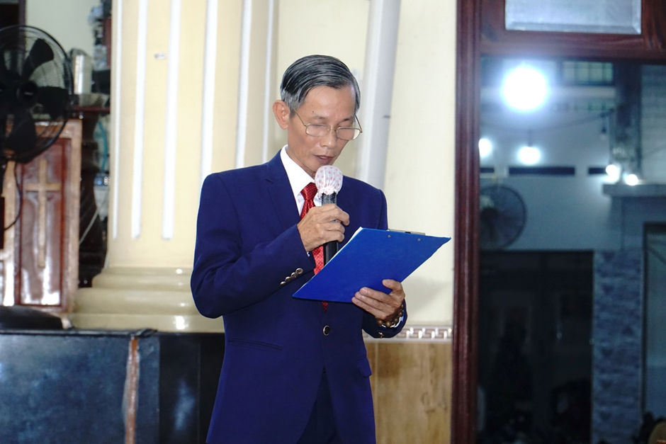 Sau lời nguyện hiệp lễ, ông Trưởng Giáo khu Gioan đã đại diện cộng đoàn dâng lời cảm tạ các linh mục và cộng đoàn đã hiện diện, hiệp dâng Thánh lễ cầu nguyện cho Giáo khu trong ngày lễ bổn mạng.
