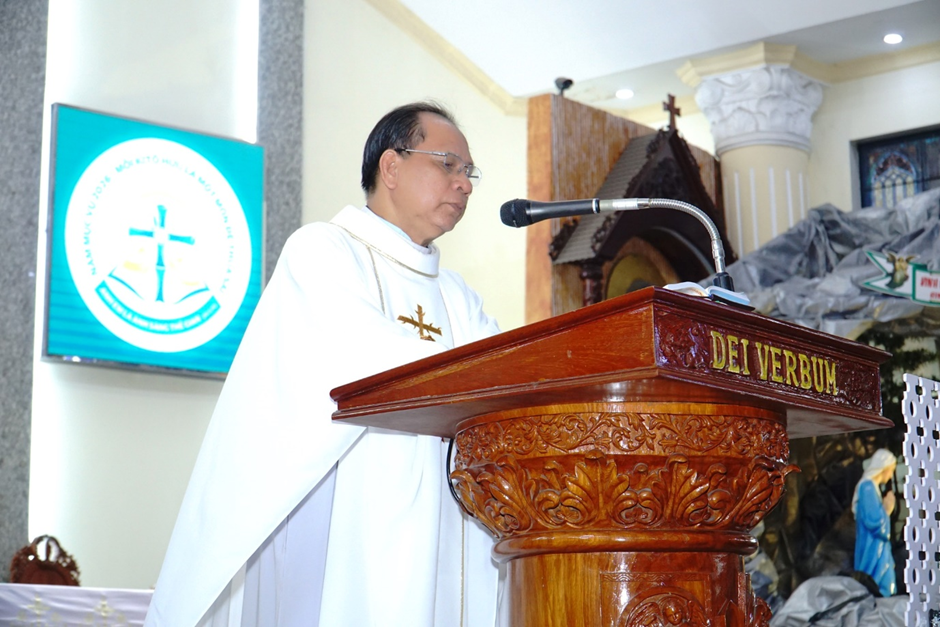 Trong bài giảng, linh mục chánh xứ đã chia sẻ Lời Chúa, khắc họa hình ảnh Thánh Gioan, người môn đệ được Chúa Giêsu yêu mến. Ngài nhấn mạnh đến biến cố Thánh Gioan được Chúa trao phó làm con Đức Maria khi đứng dưới chân thập giá năm xưa, qua lời trăn trối đầy yêu thương của Chúa Giêsu: “Này là con bà… Này là mẹ con.”