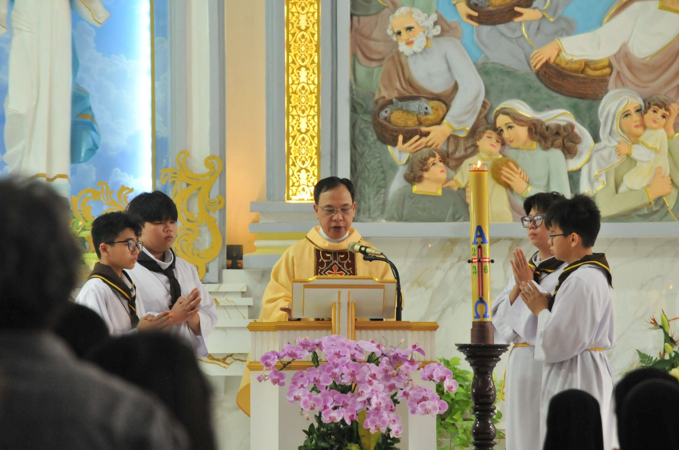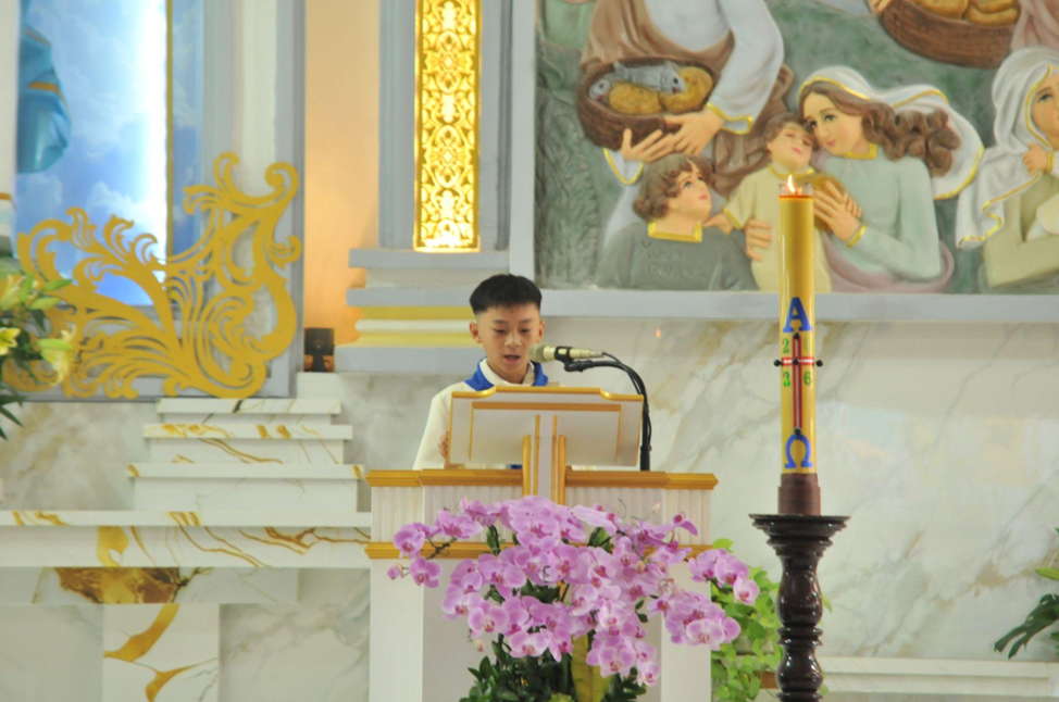 Kết thúc bài giảng, linh mục Vinh Sơn mời gọi cộng đoàn, cách riêng các em thiếu nhi, siêng năng tham dự Thánh lễ để được nuôi dưỡng bởi chính Mình và Máu Chúa, hầu sống và lớn lên trong tình yêu và lòng thương xót của Thiên Chúa.