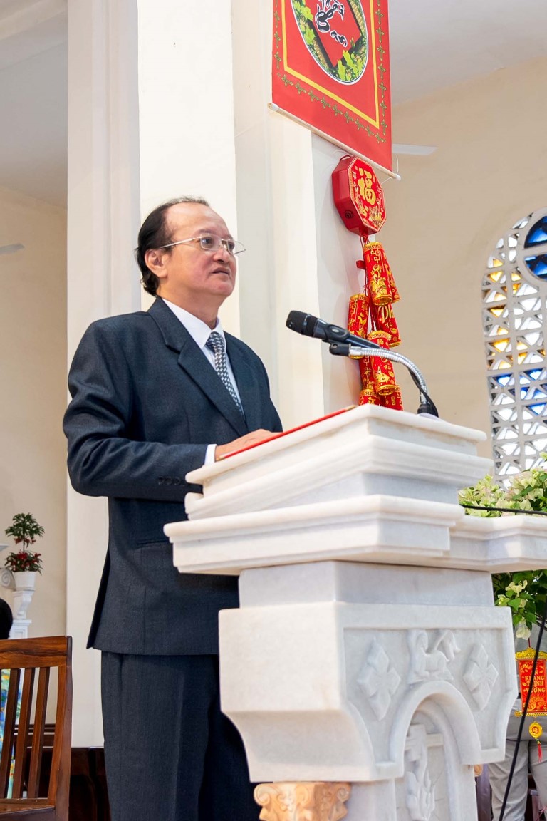 Sau lời nguyện hiệp lễ, vị đại diện HĐMV có những tâm tình chúc Tết Lm chánh xứ, Lm phó xứ, quý sơ và toàn thể cộng đoàn.