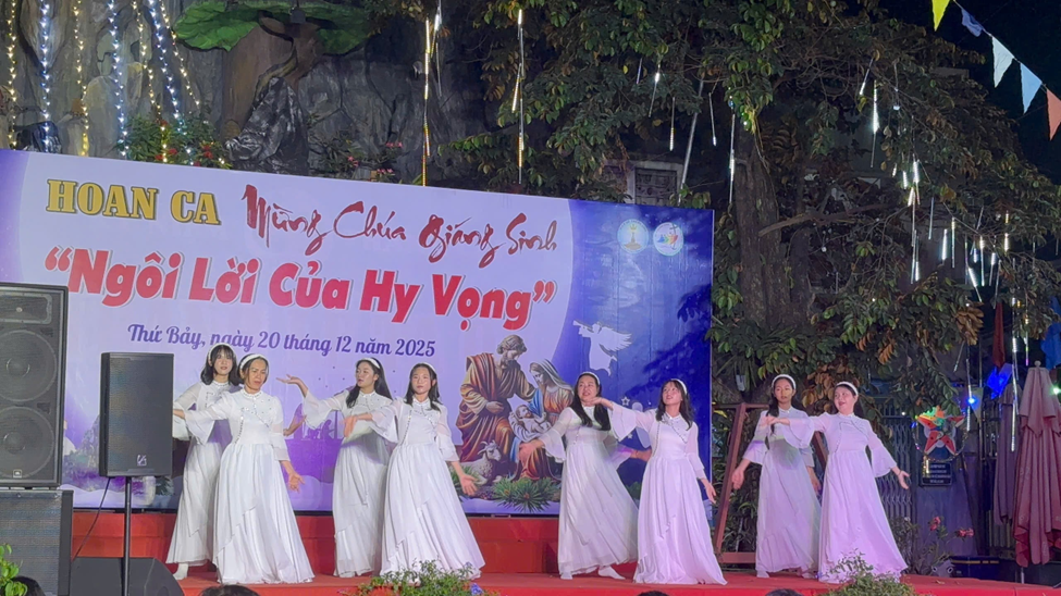 Trong bầu khí linh thiêng ấy, Đêm Hoan Ca chính thức được mở ra với chuỗi tiết mục thánh ca, múa và diễn nguyện phong phú, do các hội đoàn, ca đoàn và các tu sĩ trong giáo xứ lần lượt dâng lên Chúa Hài Đồng.