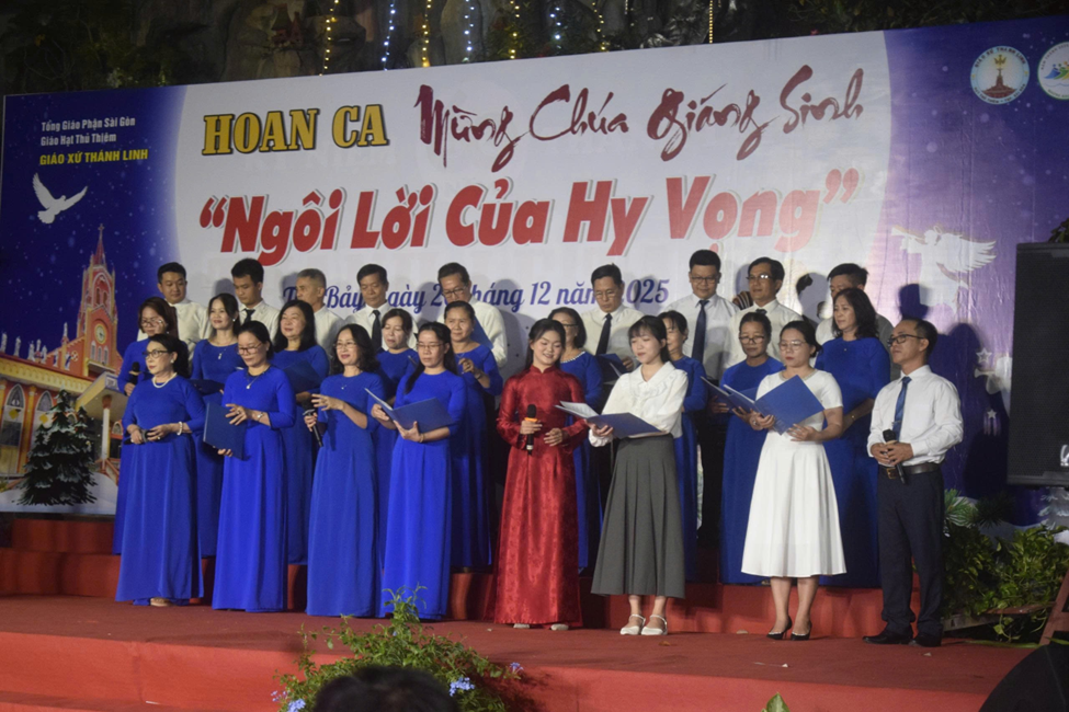 Niềm vui Giáng Sinh ấy lan tỏa khắp giáo xứ Thánh Linh, khi tối ngày 20.12.2025, cộng đoàn cùng quy tụ tại sảnh đường giáo xứ để tham dự Đêm Hoan Ca mừng Chúa Giáng Sinh 2025 với chủ đề “Ngôi Lời của Hy Vọng”. Đêm diễn không chỉ là một chương trình thánh ca, nghệ thuật, mà còn là lời tuyên xưng đức tin sống động, thắp lên niềm hy vọng Kitô giáo giữa đời sống hôm nay.