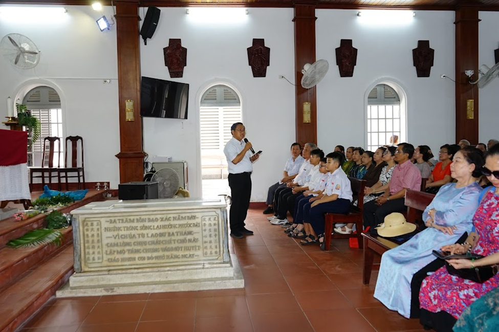 Rời Song Vĩnh, đoàn tiến đến nhà thờ Mồ - nơi lưu giữ chứng tích khoảng 300 tín hữu bị thiêu sống tại nhà ngục Phước Lễ năm 1862, dưới triều vua Tự Đức. Dù chỉ là một nguyện đường khiêm tốn, nơi đây vẫn ghi khắc trang sử hào hùng của các vị tử đạo.