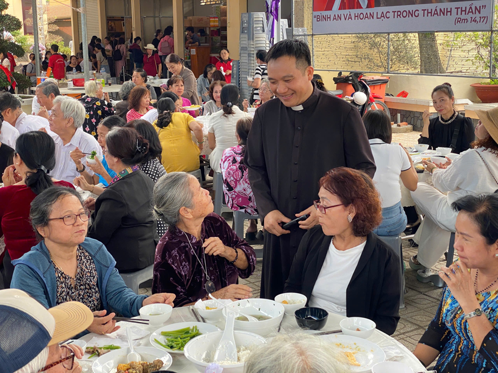 Trong bầu khí thân tình, linh mục Gioan Baotixita Nguyễn Hữu Sang, chánh xứ Ba Giồng, kiêm Giám đốc Trung tâm Hành hương Ba Giồng, chia sẻ niềm vui với cộng đoàn qua những bài hát tạ ơn Chúa.