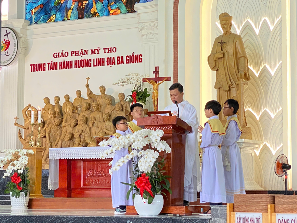 Đồng thời, Linh mục Giuse Nguyễn Huỳnh Bảo Sơn, Phó xứ Ba Giồng, trình bày về lịch sử vùng đất thánh và chứng tá đức tin của các Thánh Tử Đạo.